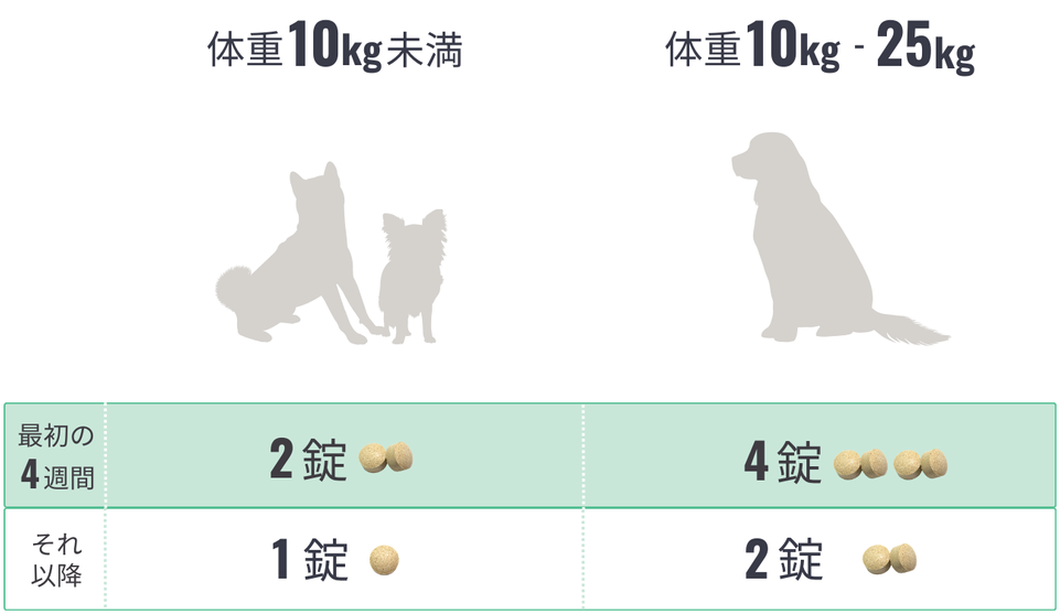 良い健康状態を維持するのに必要なトライザの錠数には個体差があるため、気になる不調がみられる場合は多めの量で与えて、良い変化がみられたら減らして様子を見て、良い健康状態を維持できる必要最小量で続けてください。