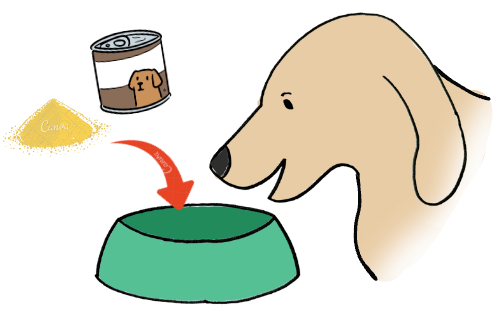 2錠剤をつぶして粉状にして、フードやおやつなどの好物に混ぜる